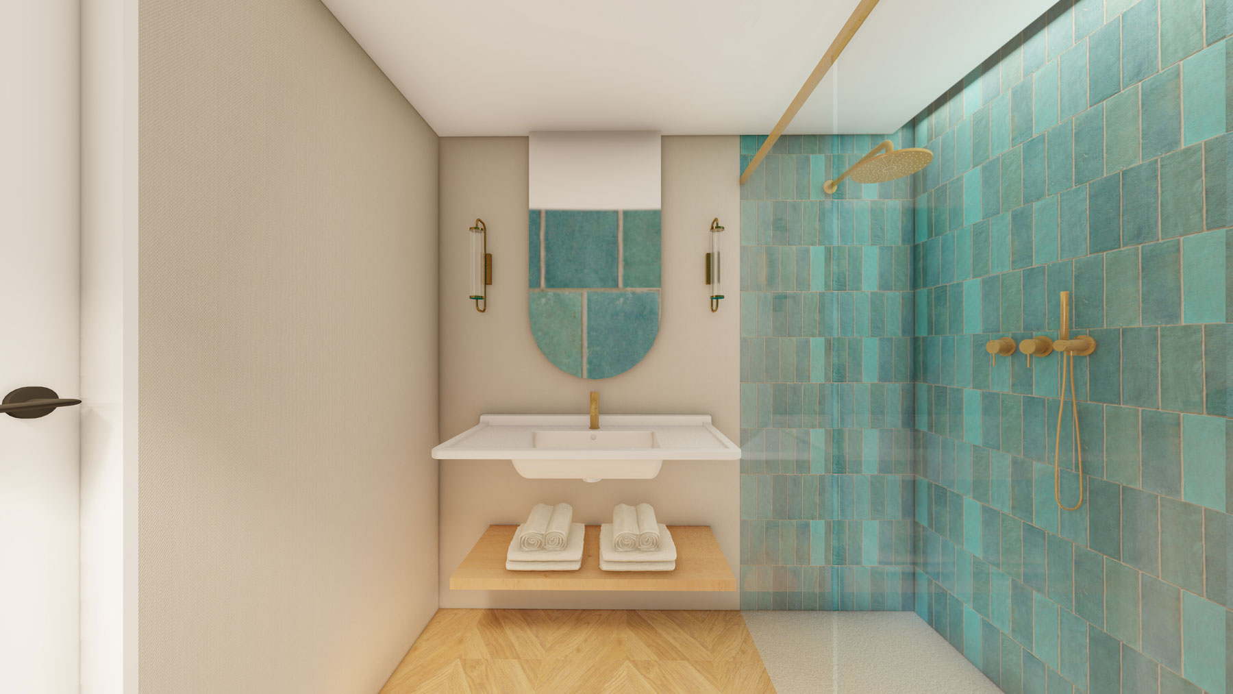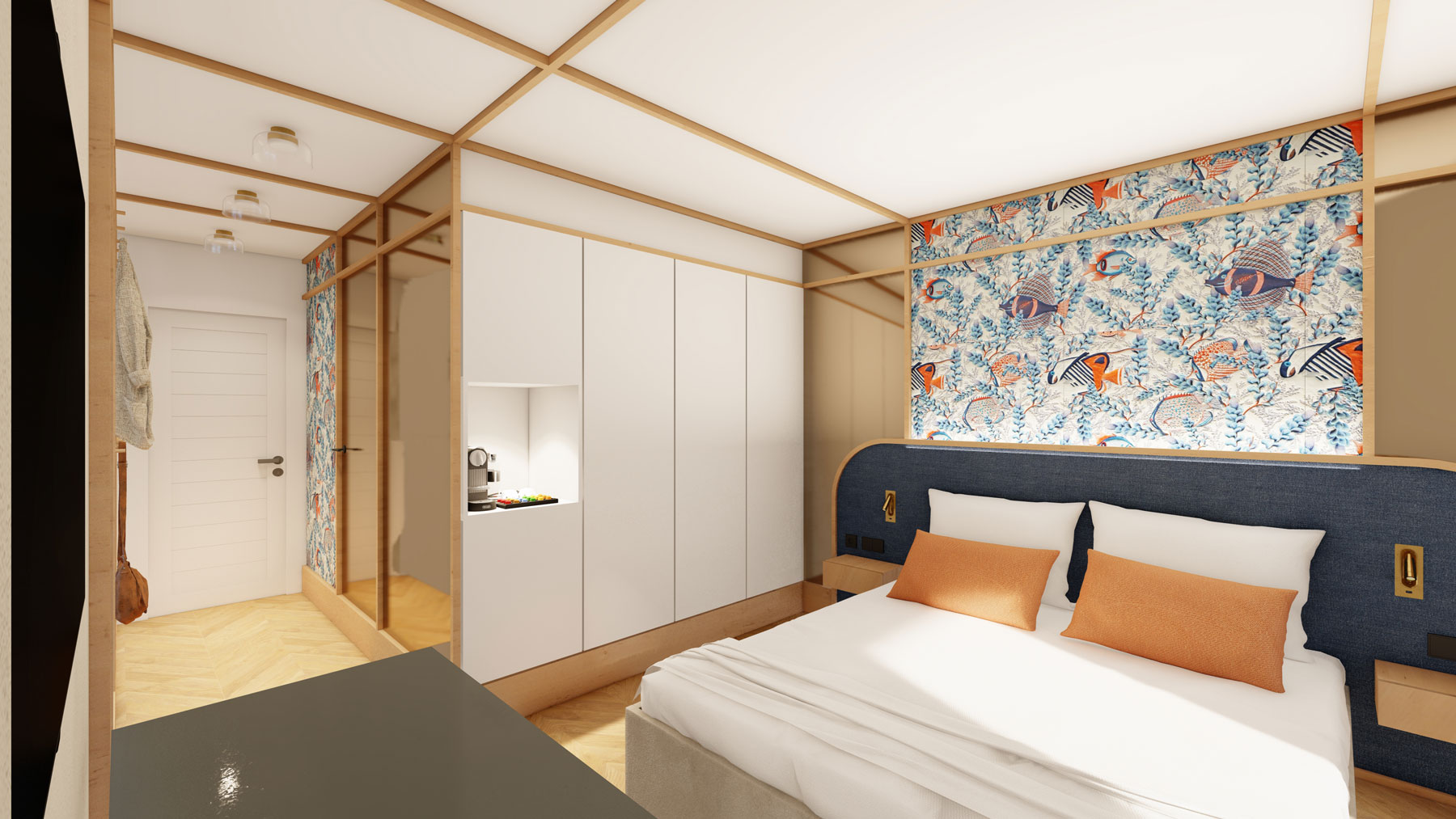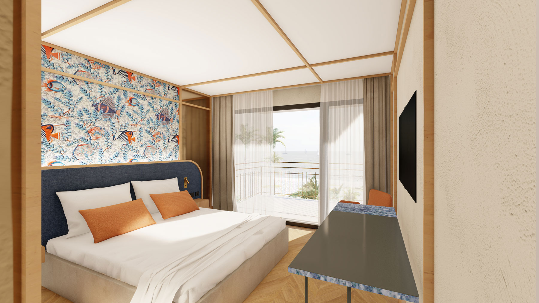 Renders de propuesta de habitación para el hotel Almirante en Alicante, España