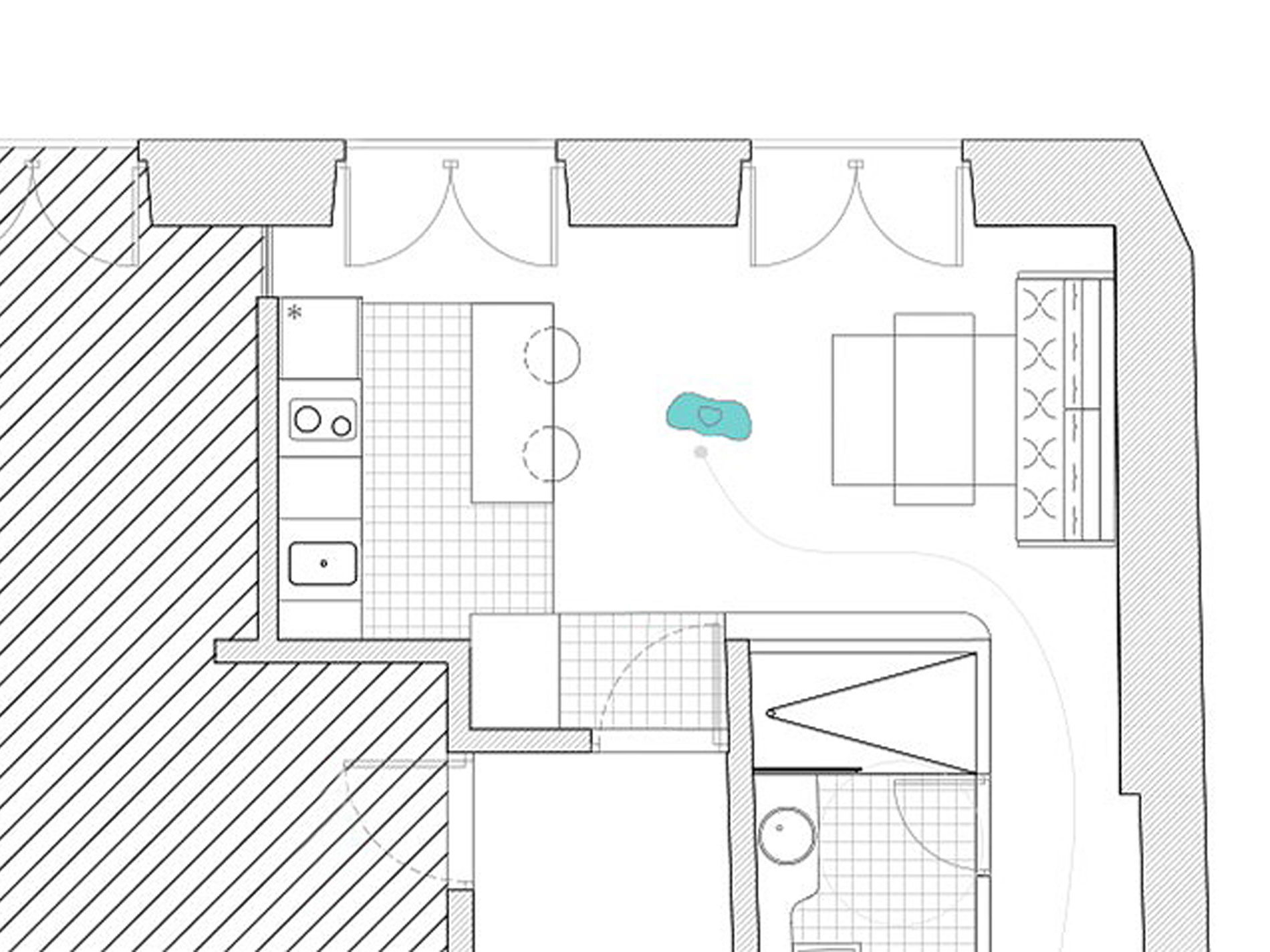 Fotografías y plano detalle de apartamento rehabilitado en Alicante, España