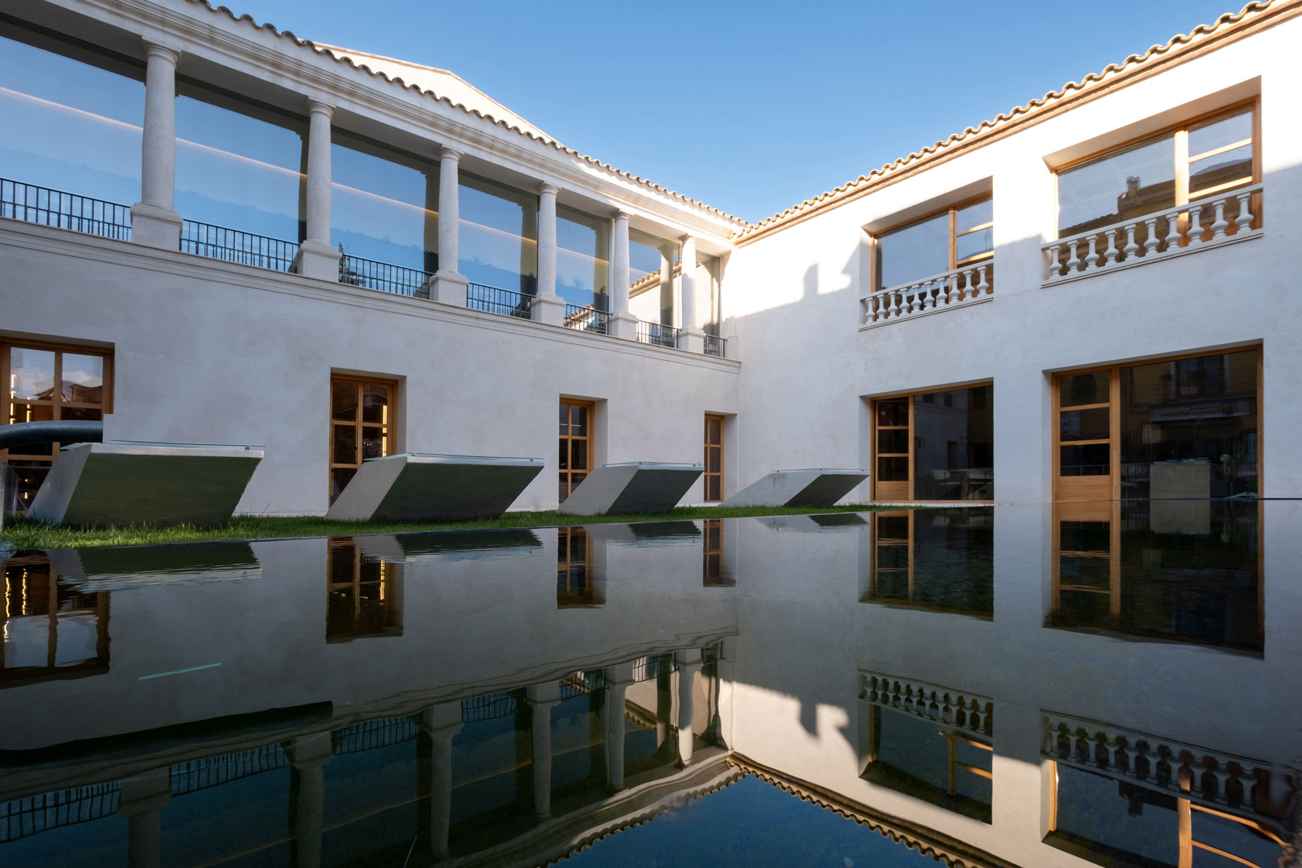 Finalizada la rehabilitación, la espectacular fachada, la galería de columnas y el arrimadero de azulejería interior se fusionan con un diseño contemporáneo. Esta transformación de un palacio aragonés de más de 500 años refleja la armonía entre historia e innovación, integrando tecnología, saber local y un interiorismo funcional y equilibrado. Un proyecto complejo que deja un gran orgullo.