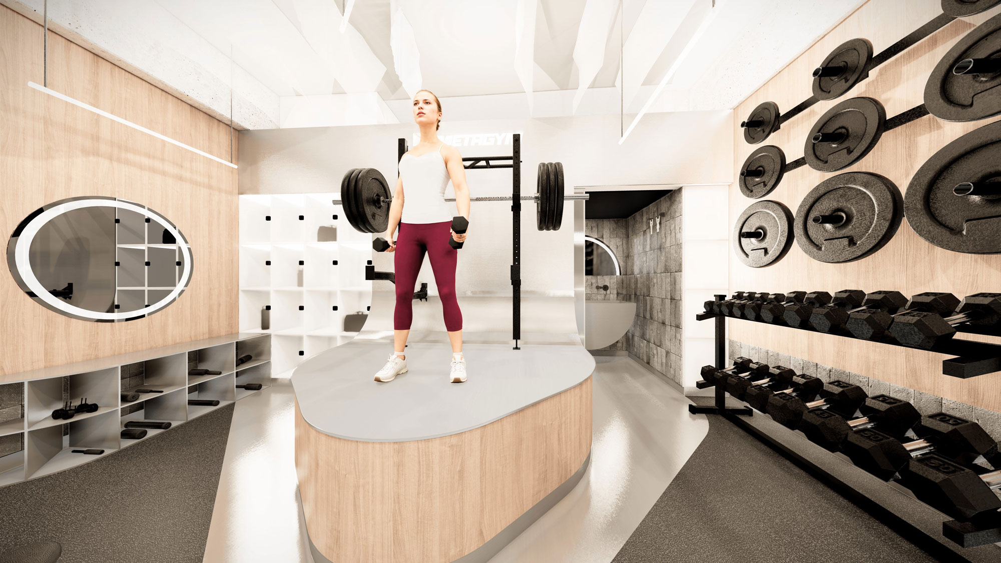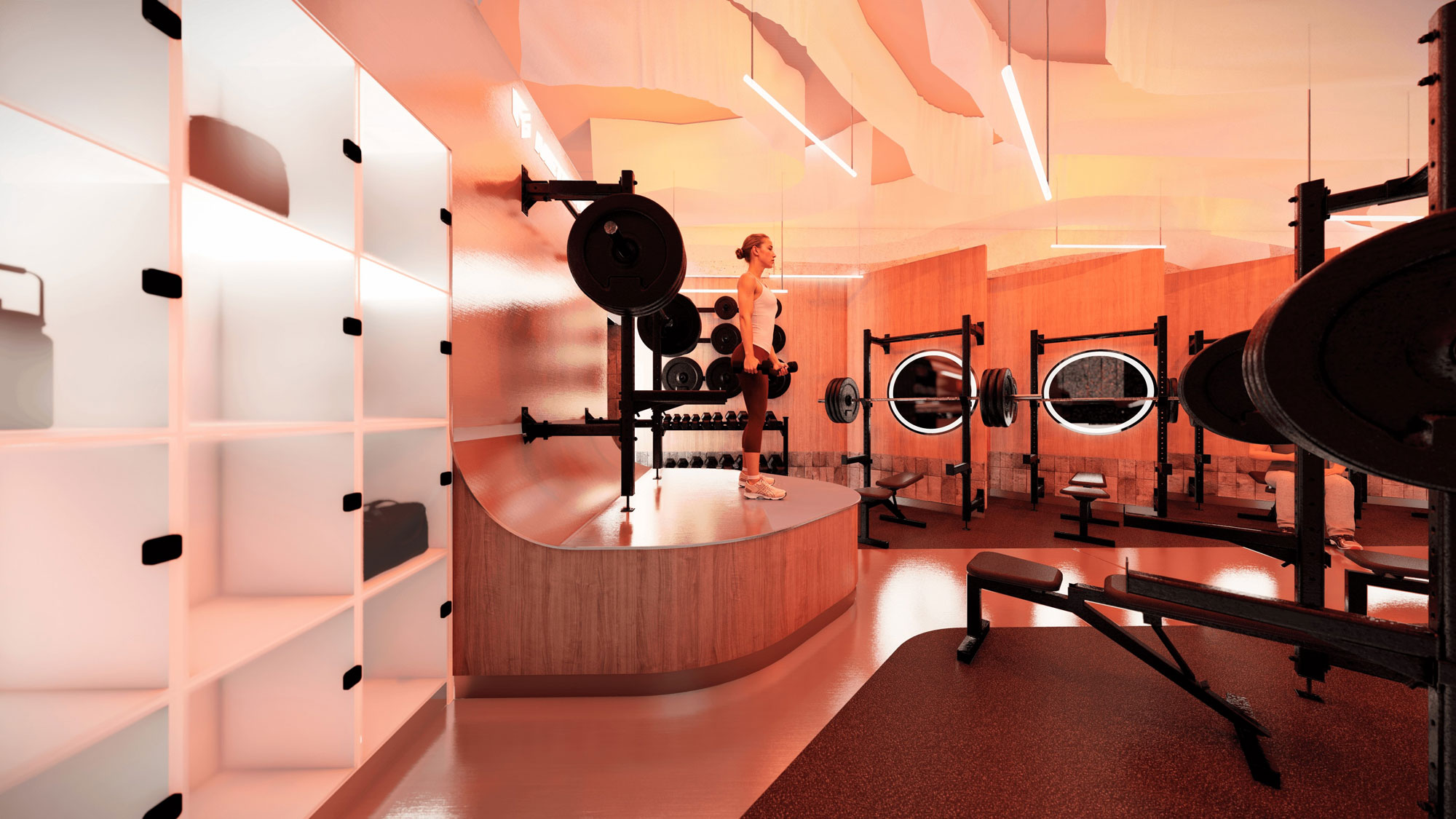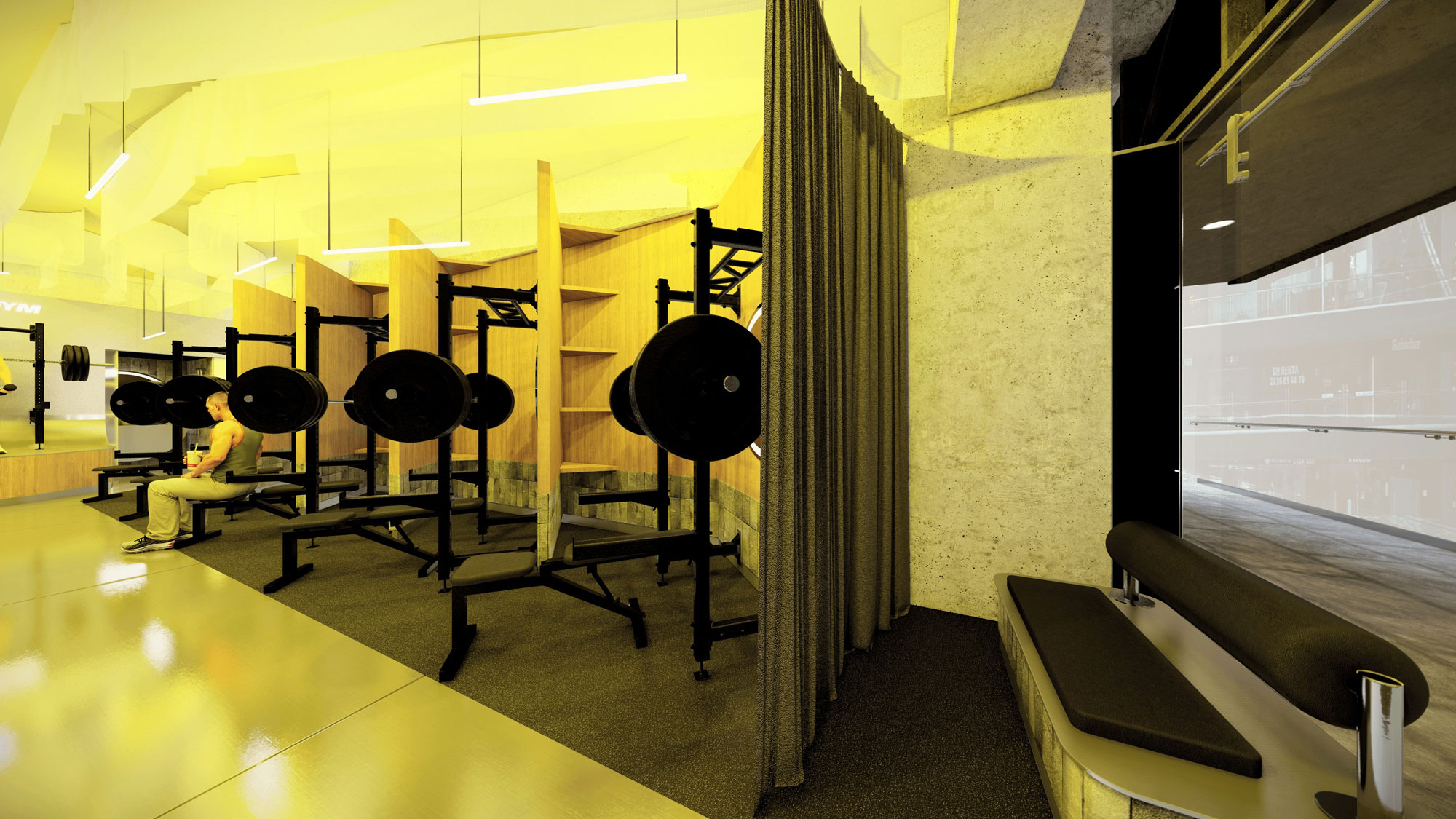 En nuestro estudio desarrollamos recientemente un gimnasio boutique en el que el espacio debía cumplir una doble función: centro de entrenamiento y showroom del equipamiento de la marca propia del dueño.
