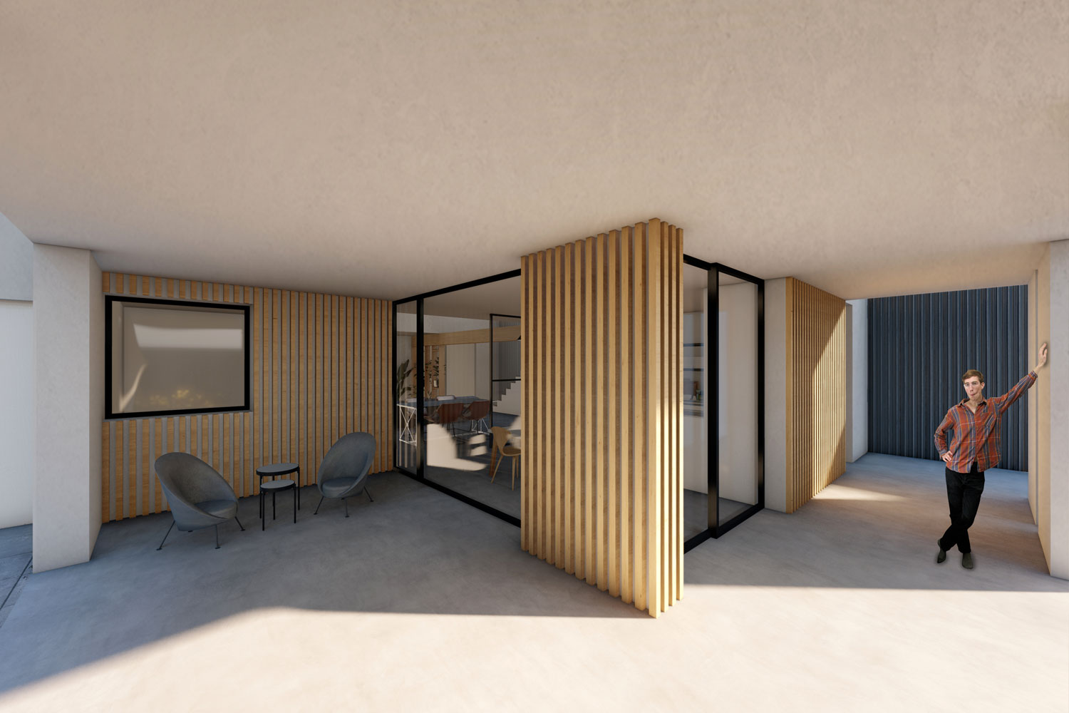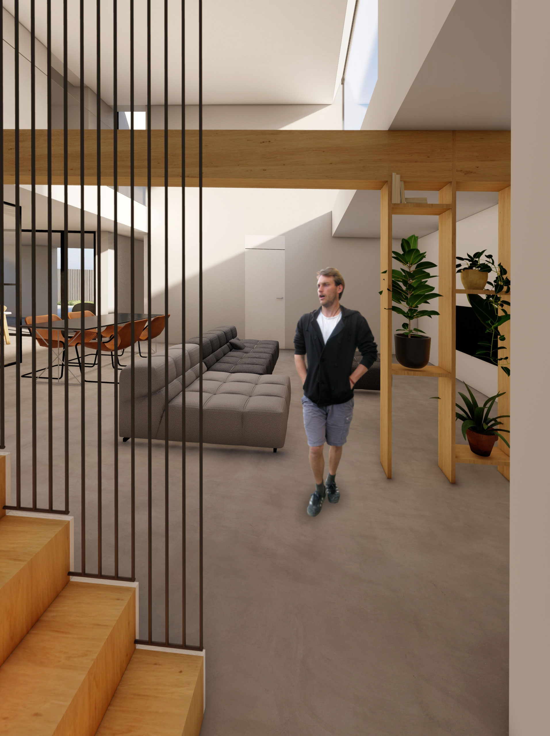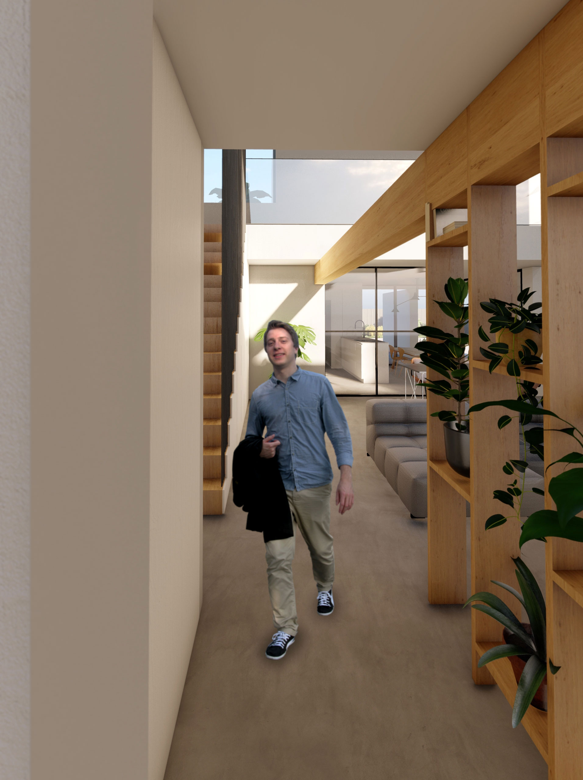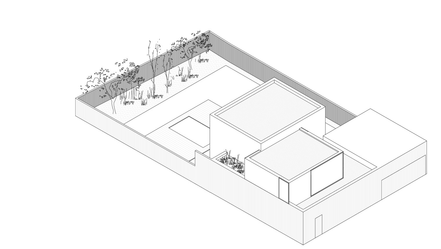 Este juego de piezas, además de fragmentar el volumen y disminuir el impacto de este en el entorno, nos permite crear en el interior dobles alturas y espacios conectados.