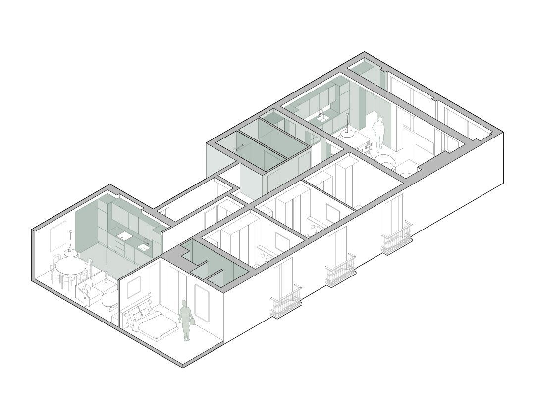 La propuesta responde a una realidad cada vez más presente en la ciudad: la necesidad de adaptar viviendas existentes a nuevas formas de habitar, optimizando su superficie y multiplicando sus posibilidades sin recurrir a nuevas construcciones.