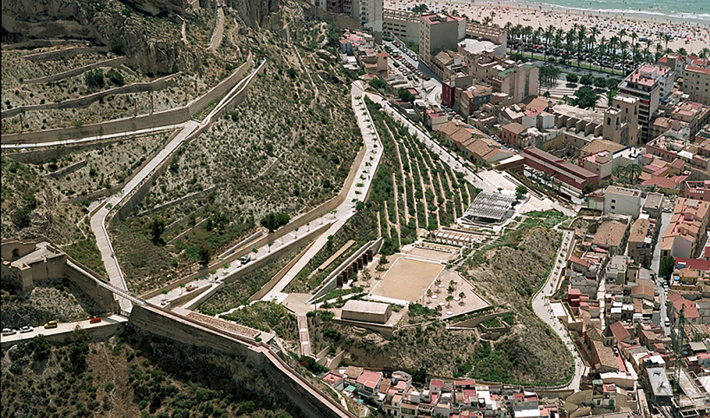 El Castillo de Santa Bárbara de Alicante, catalogado como BIC (Bien de Interés Cultural), y su entorno urbano más próximo es un gran ejemplo de cómo regenerar una zona degradada recuperando este hito de la ciudad, dando lugar a una progresión entre la trama urbana de Alicante y el monte Benacantil.