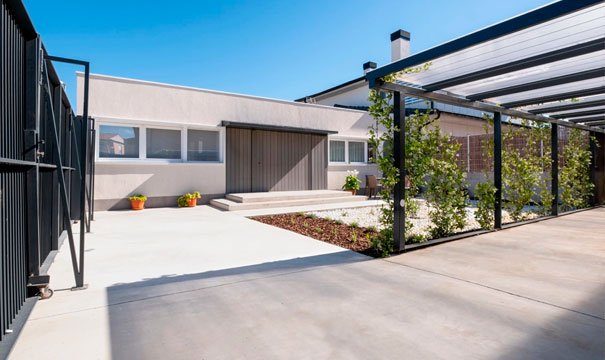 Los patios definen áreas diurnas, intermedias y privadas, con una organización flexible y orgánica. La vivienda es energéticamente eficiente, utilizando suelo radiante, aerotermia y ventilación mecánica. Una valla perimetral protege la privacidad y filtra la luz hacia el interior.